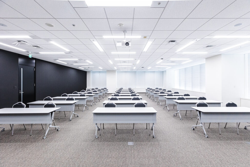 156m2 | 3m | 90名 (3名掛け) 60名 (2名掛け) | 90名 (3名掛け) 60名 (2名掛け) | 60名 (3名掛け) 40名 (2名掛け) | 154名 | 【午前3h】 9:00〜12:00 118,800円〜 【午後4h】 13:00〜17:00 152,900円〜 |