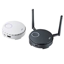 HDMI信号をワイヤレスで送信し離れた場所に設置された液晶テレビやプロジェクターから出力できる、ワイヤレスHDMI送受信機のセットモデル。送信機は64台まで増設でき、ボタン1つで瞬時に切り替えが可能。